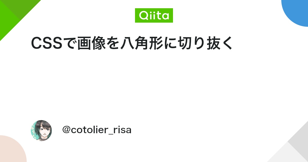 QiitaにてCSSだけで画像を八角形に切り抜く投稿がありましたのでシェアしますね。
